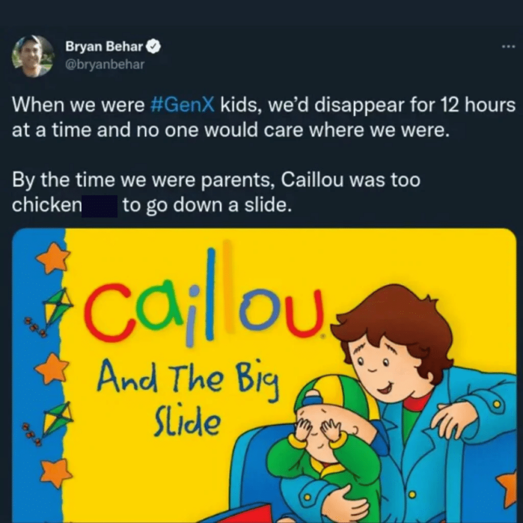 From generation to generation, a lot can change, especially when it comes to parenting styles. In this tweet, Bryan Behar illustrates part of that change perfectly. He points out that when Gen Xers were young, they would disappear for half a day at a time. Today, parenting norms are a bit different.