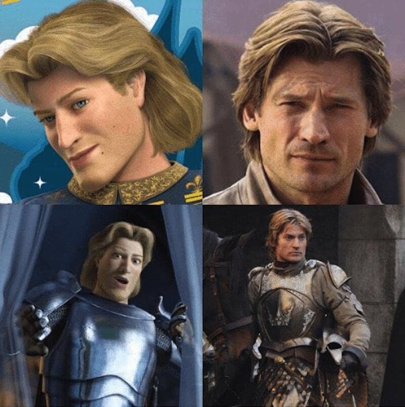 However, here’s one thing even the most die-hard Shrek fans might not have noticed about GoT. Jaime Lannister looks a lot like the Prince Charming version of Shrek in Shrek 2. We think that the producers at HBO cast Nikolaj Coster-Waldau for the role solely because he looked like a spitting image of Prince Charming. Don’t quote us on this, but what other reason is there?